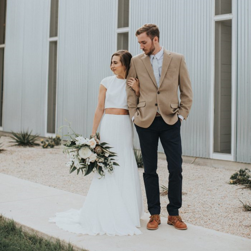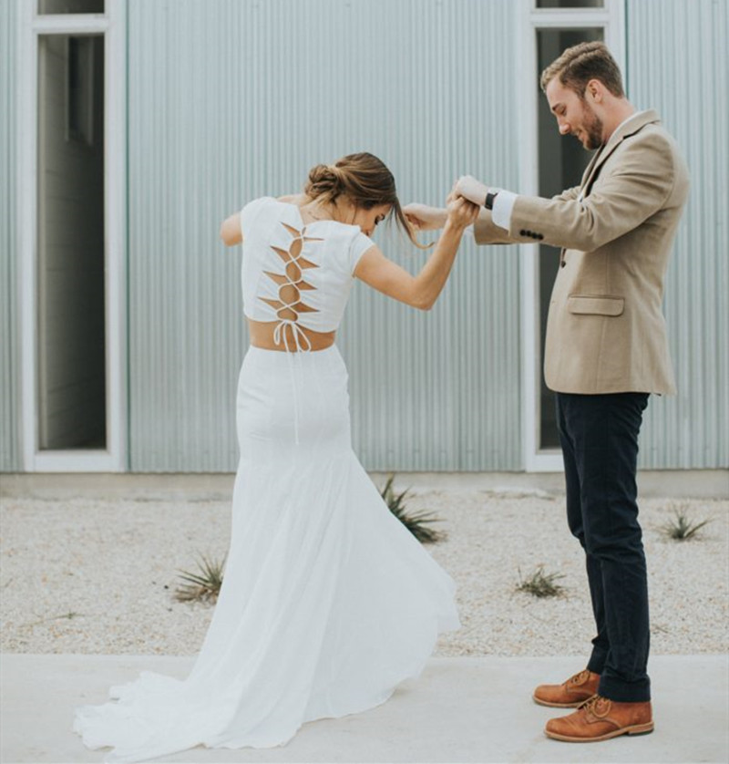 Cap Sleeves Two Pieces Simple Wedding Dresses