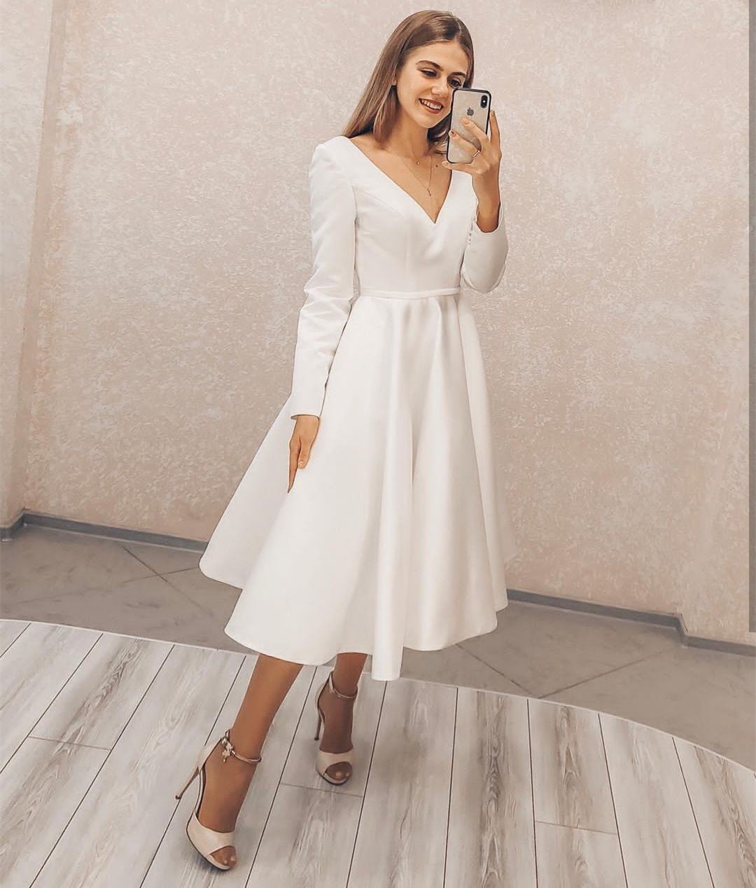 Short Wedding Dress A-Line Long Sleeve V-Neck Simple Boho Vintage For Women Robe De Mariee Bridal Gowns