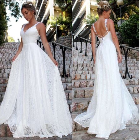Long Lace Formal Party Dress Prom Wedding Bridesmaid Ball Gown