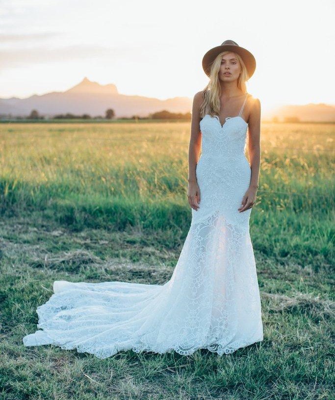 Sexy Spaghetti Straps Bohemian Wedding Dresses with Low Back New Arrival Full Lace Beach Garden Bridal Gowns