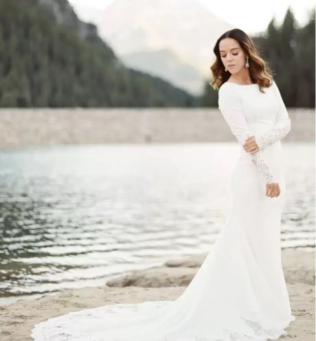 Simple Modest Wedding Dresses With Long Sleeves Lace Appliques Full Sleeves Country Women Informal Modest Bridal Gowns