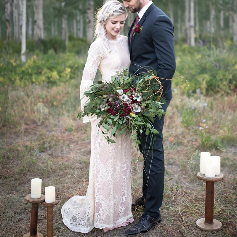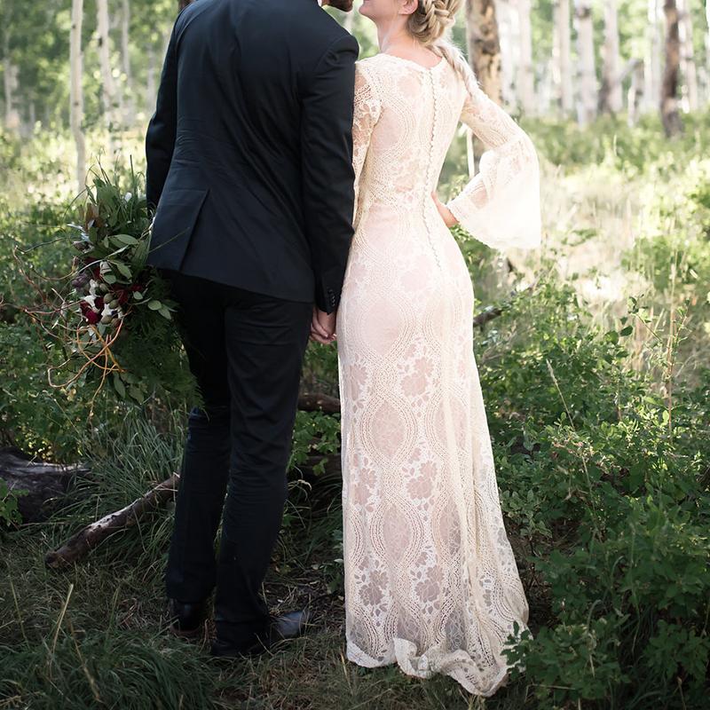 Hipple Lace Beach Boho Wedding Dresses Bell Long Sleeve Bridal Gowns Rustic Country Style Bohemian Wedding Dress