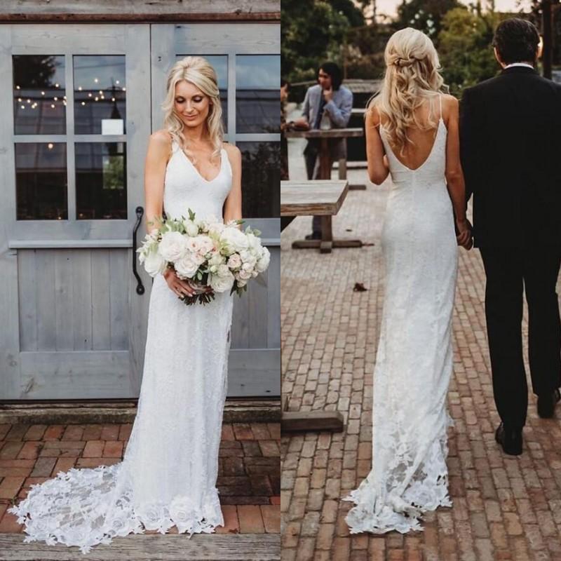 Modern V Neck High Split Lace Mermaid Beach Wedding Dresses Backless Sweep Train Sleeveless Bohemian Wedding Gowns