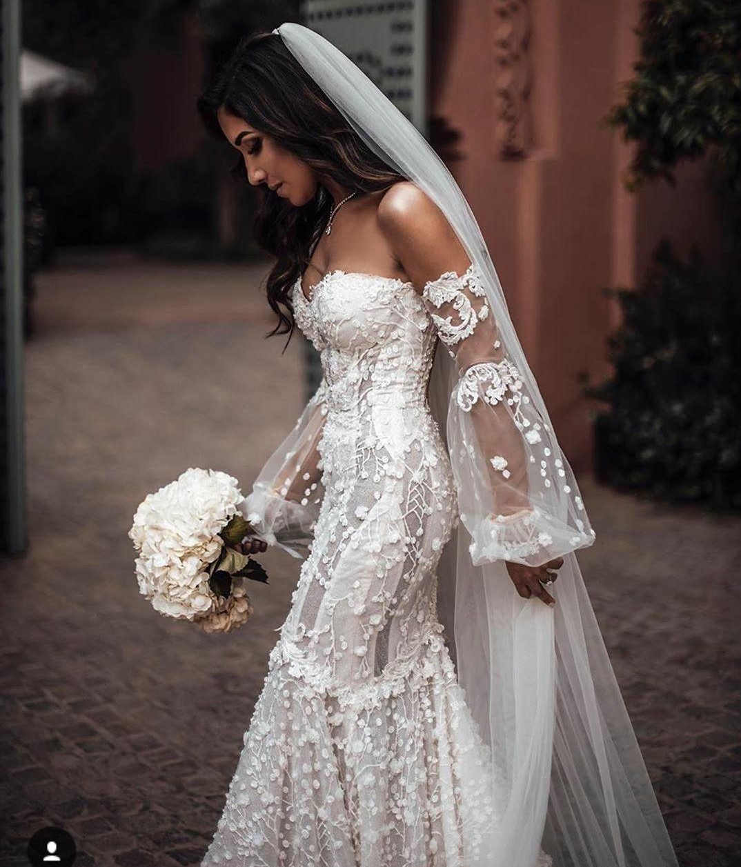 Lace Bohemian Wedding Dresses Country Style Sweetheart Beads Mermaid vestido de novia with Removable Long Sleeves Brial Wedding Gowns