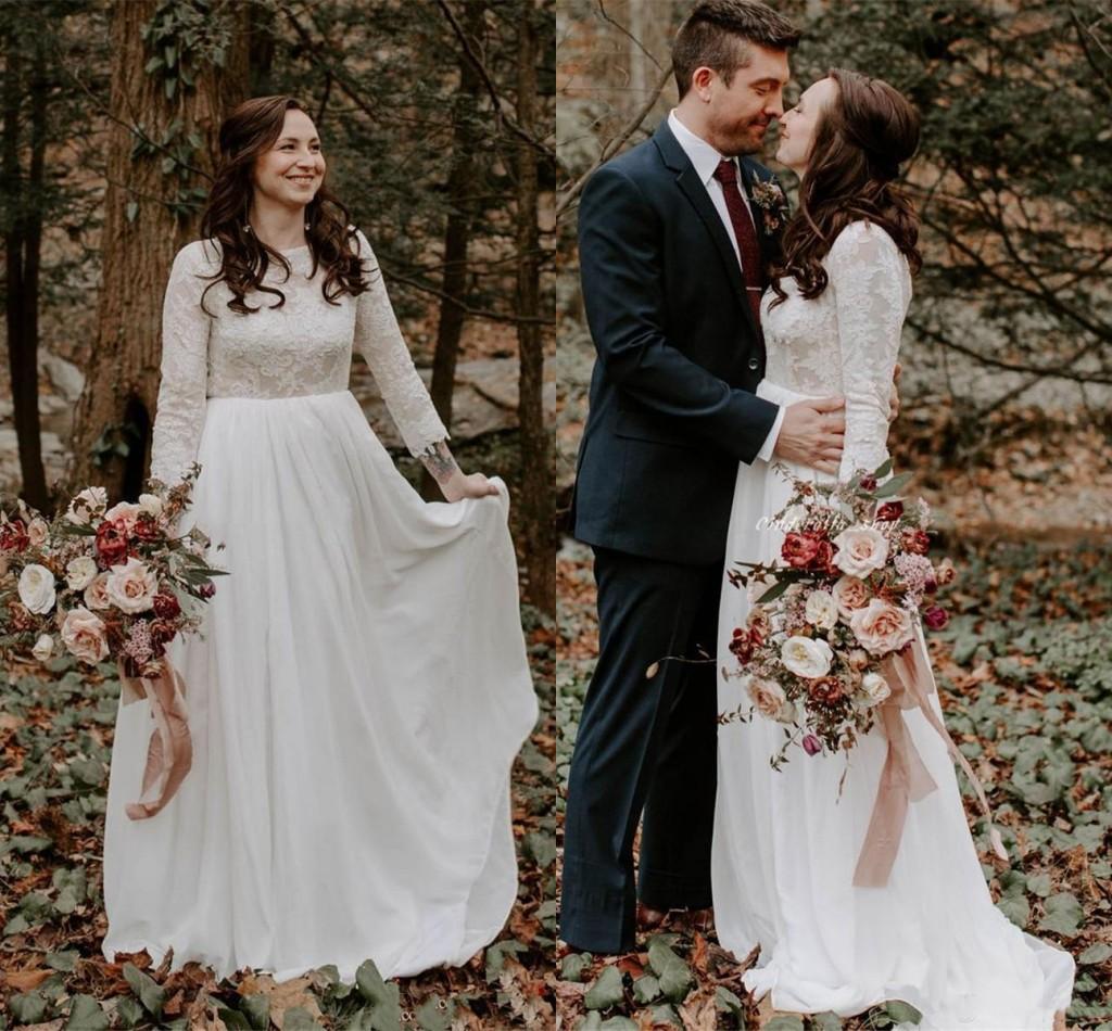 Summer Boho Wedding Dresses Bateau Backless 3/4 Long Sleeve Sweep Train Lace Bohemian Beach Country Bridal Gowns