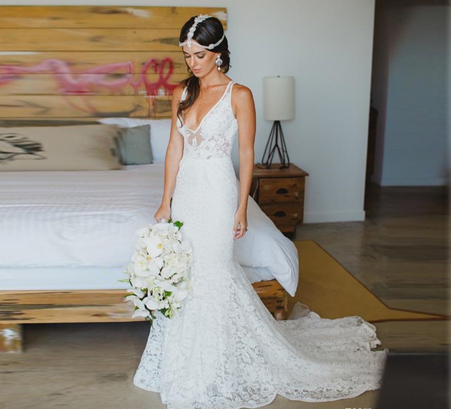Gothic Hippie Bohemian Wedding Dresses Mermaid Sexy V Neck Lace Appliques robes de mariée Backless Long Country Bridal Gowns