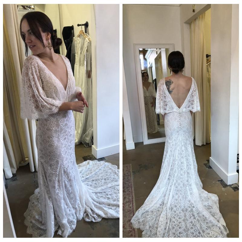 Alluring Mermaid Lace Wedding Dress V-Neck with 3/4 Sleeve Bohemian Wedding Dress Plunging Back Bridal Gowns