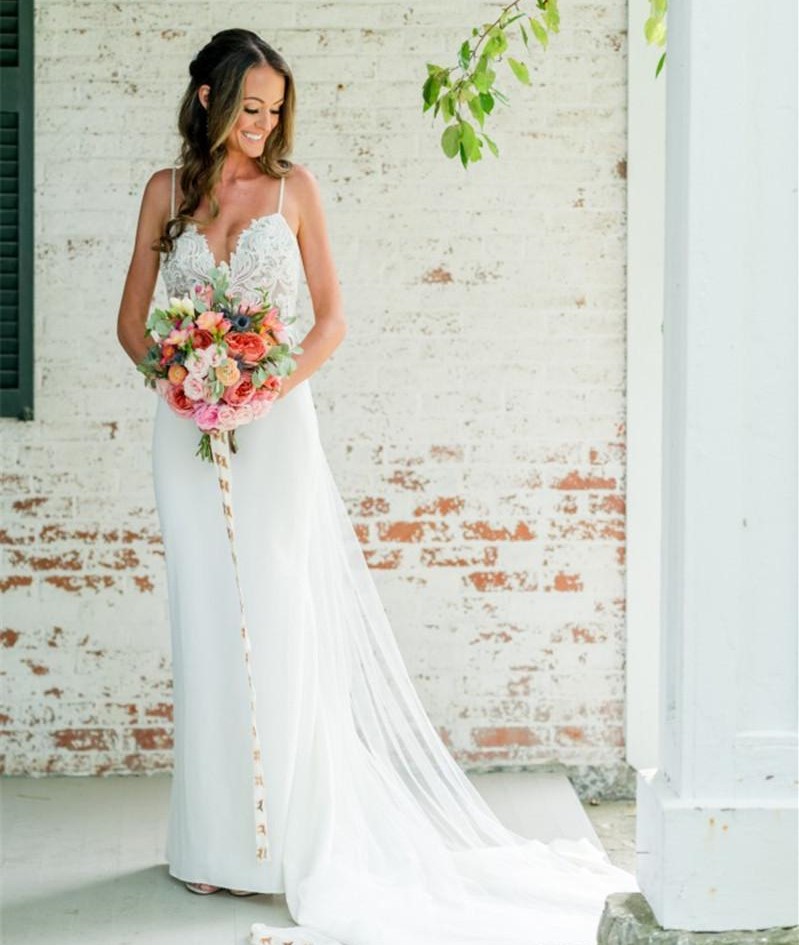 Simple Sexy Spaghetti Open Back Beach Bohemian Wedding Dresses Elegant Lace Appliqued Plus Size Country Boho Bridal Gowns