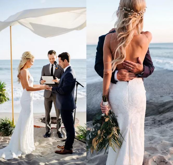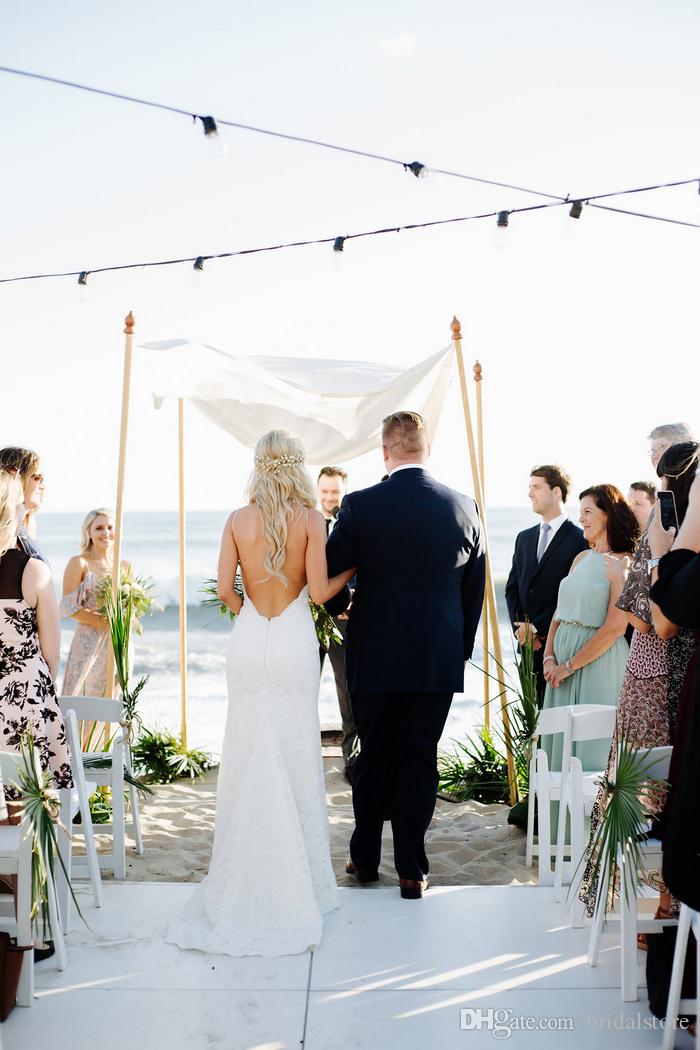 summer beach mermaid wedding dresses sexy spaghetti straps backless fishtail lace bohemian bridal gowns