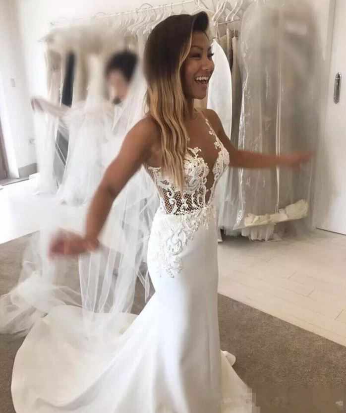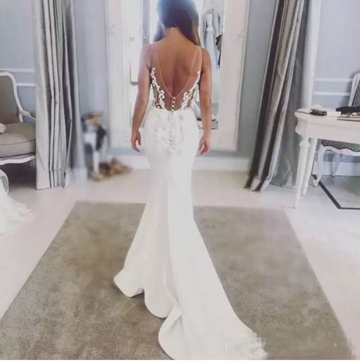Hot Sexy Mermaid Lace Wedding Dresses Sweep Train Illusion Backless Garden Beach Bohemian Wedding Dresses Bridal Gowns
