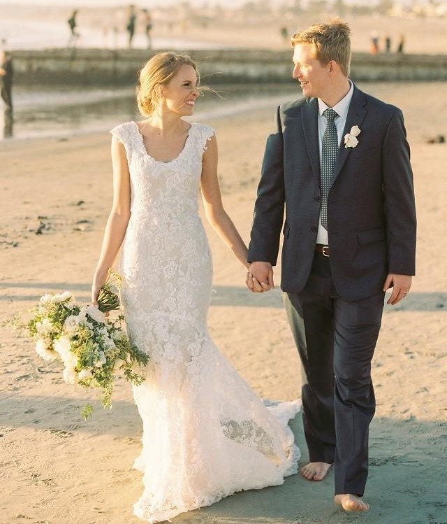 Mermaid Modest Wedding Dresses Long Scoop Neck Buttons Back Lace Appliques Vintage Bohemian Country Bridal Gowns