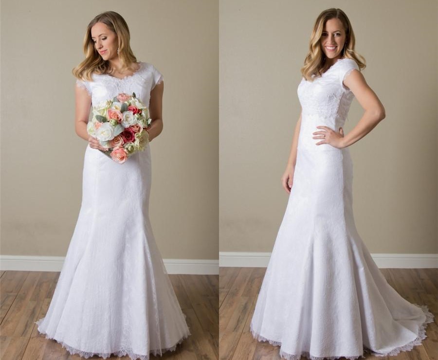 Vintage White Lace Mermaid Modest Wedding Dresses With Sleeves V Neck Simple Cap Sleeves Bridal Gowns Cheap Bohemian Long Wedding Dress