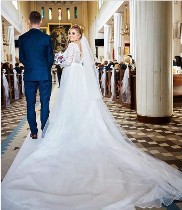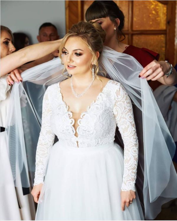 Bohemian wedding dress, long sleeve lace decal backless wedding dress