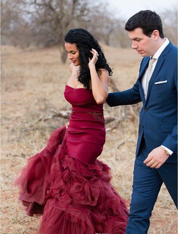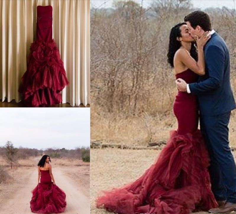 Burgundy Mermaid Wedding Dresses plus size bohemian lace mermaid trumpet wedding dresses bridal gowns off the shoulder
