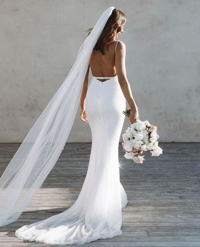 Glitter Mermaid Sweetheart Spaghetti Straps Sequin Wedding Dress
