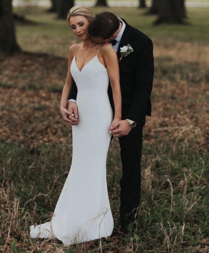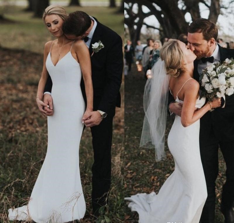 Simple Spaghetti Straps White Satin Mermaid Wedding Dresses Sexy Backless Long Summer Bridal Gowns Boho Beach Wedding Dress