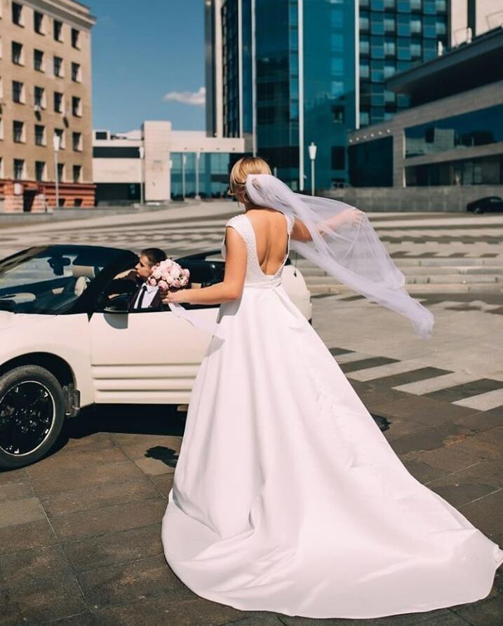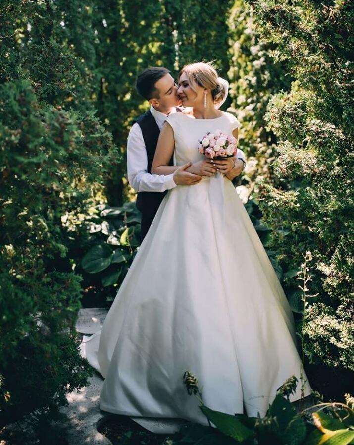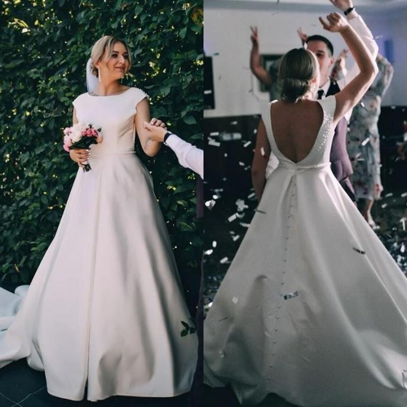 Elegant Boho Garden Wedding Dresses Satin Jewel Neck Cap Sleeve A Line Bridal Gowns