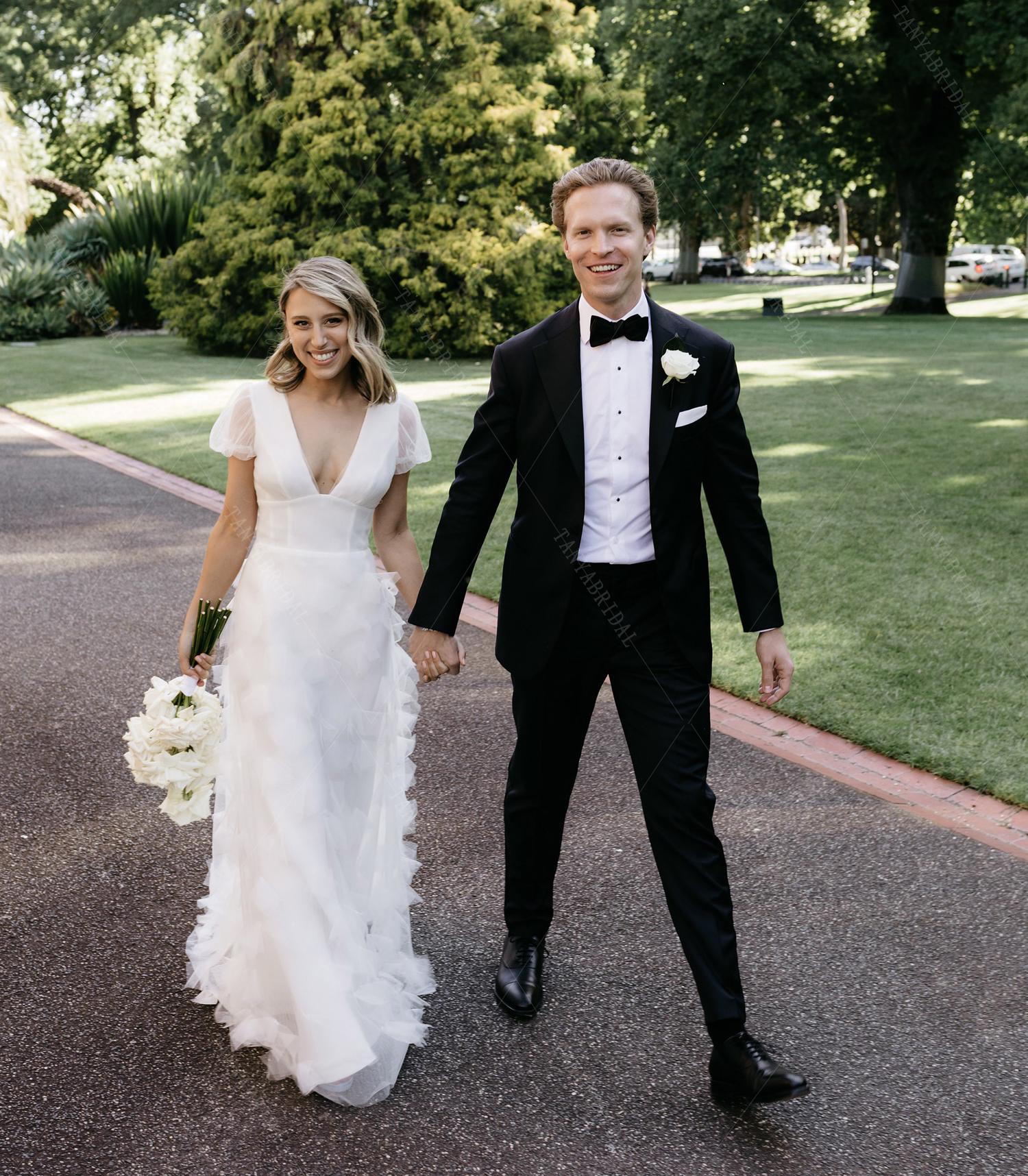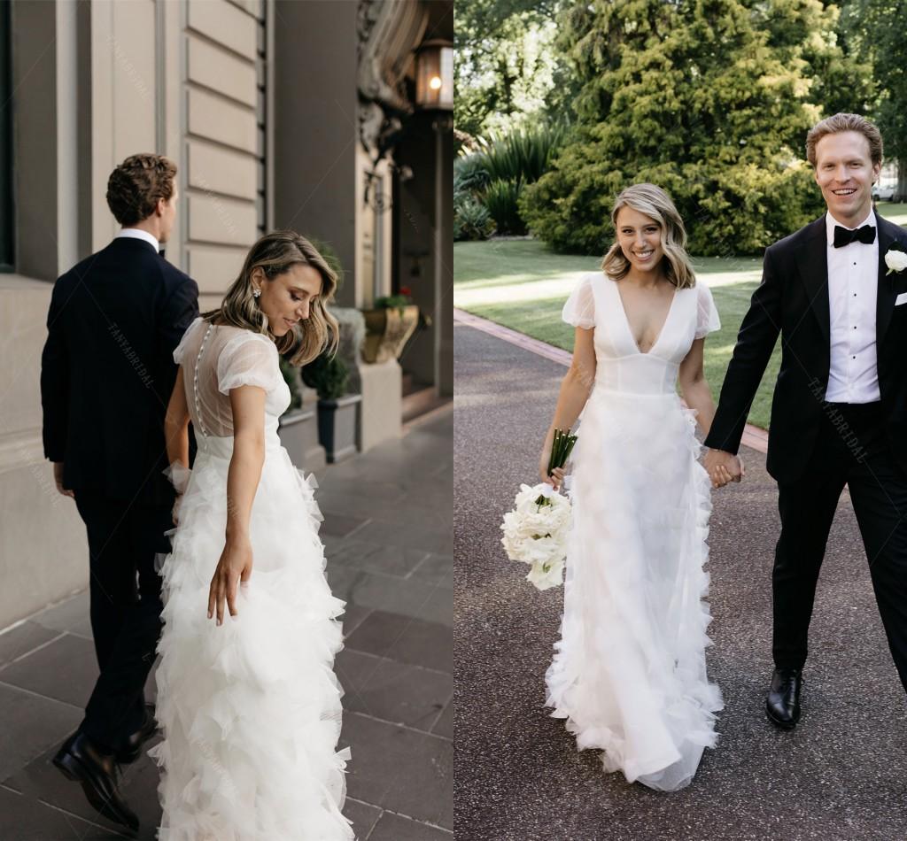 Bohemian Country Wedding Dresses with Cap Sleeve V-neck Handmade Butterfly Outdoor Beach Pleats Bridal Gowns