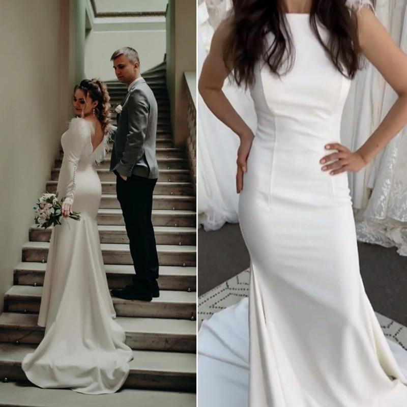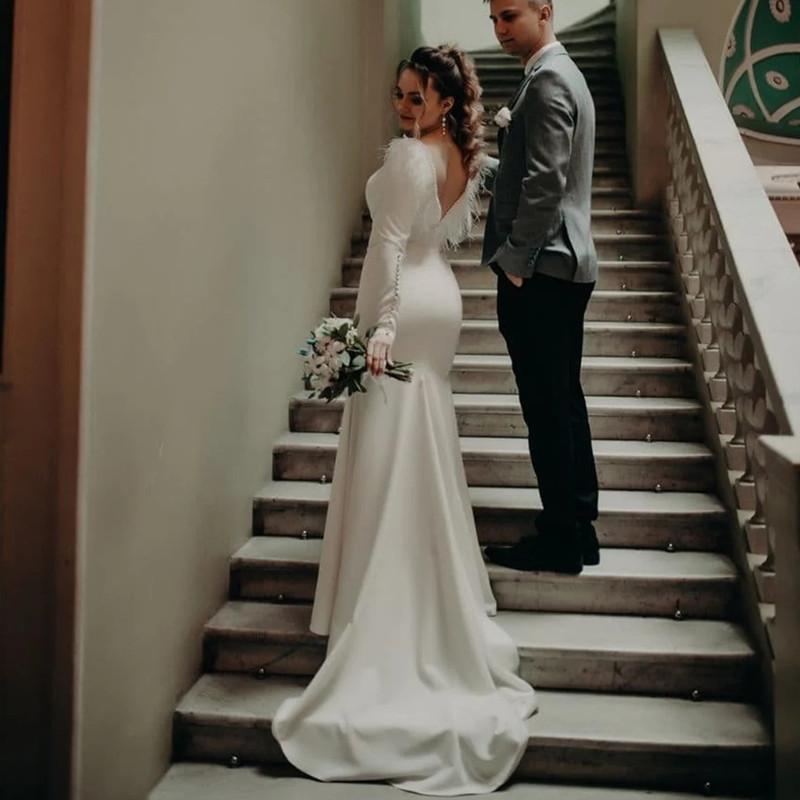 A line long Sleeves Wedding Dresses Bridal Gowns satin Backless dresses