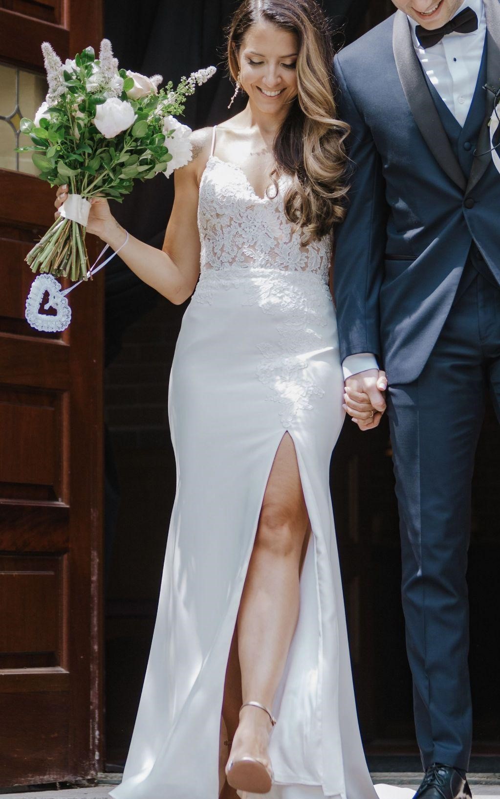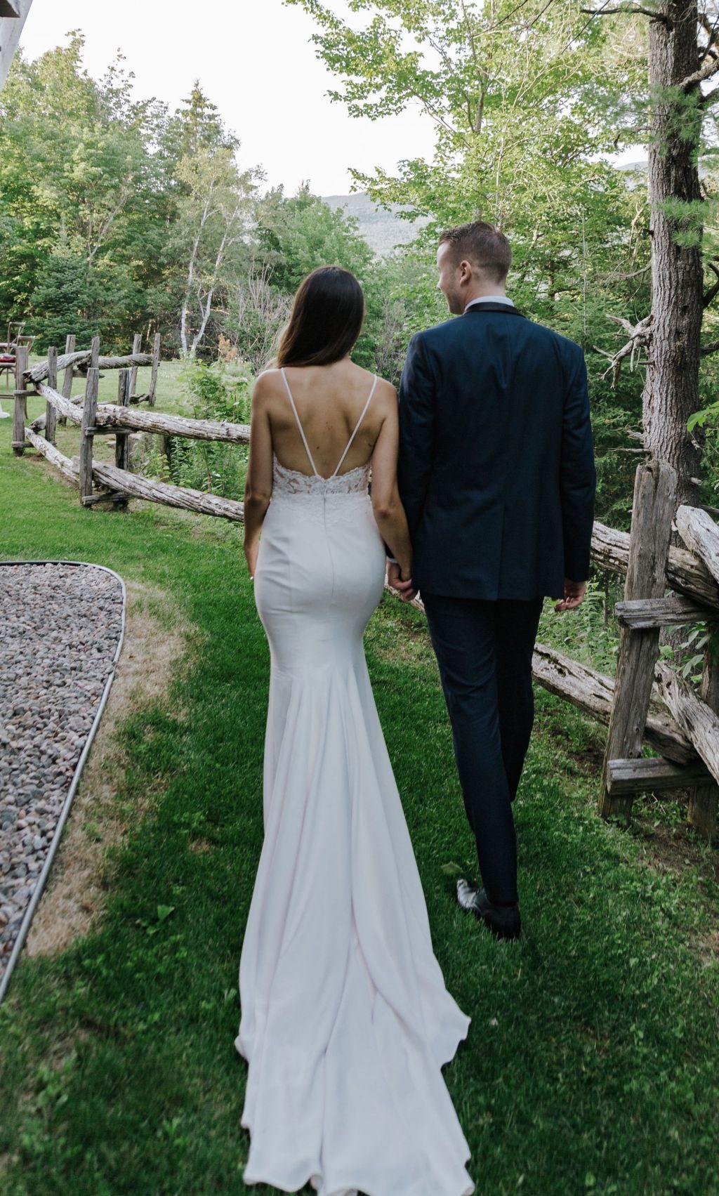 Sexy A-line Lace Garden Wedding Dresses Spaghetti Strap V Neck Appliques Front Split Backless Bridal Gowns