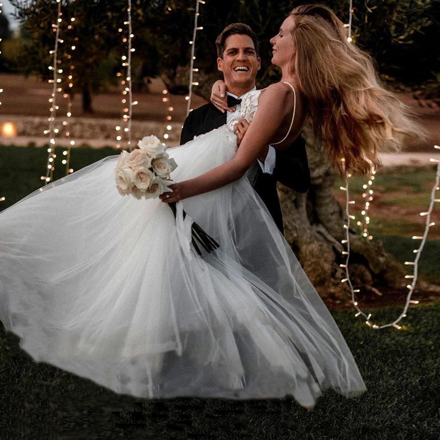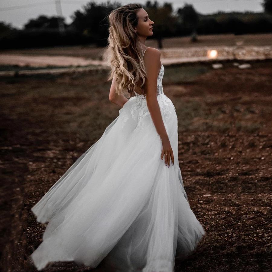Other Wedding Dresses Boho Dress Spaghetti Straps Low Back Appliqued Lace Tulle Floor Length Elegant Vestido De Noiva Bridal Gown