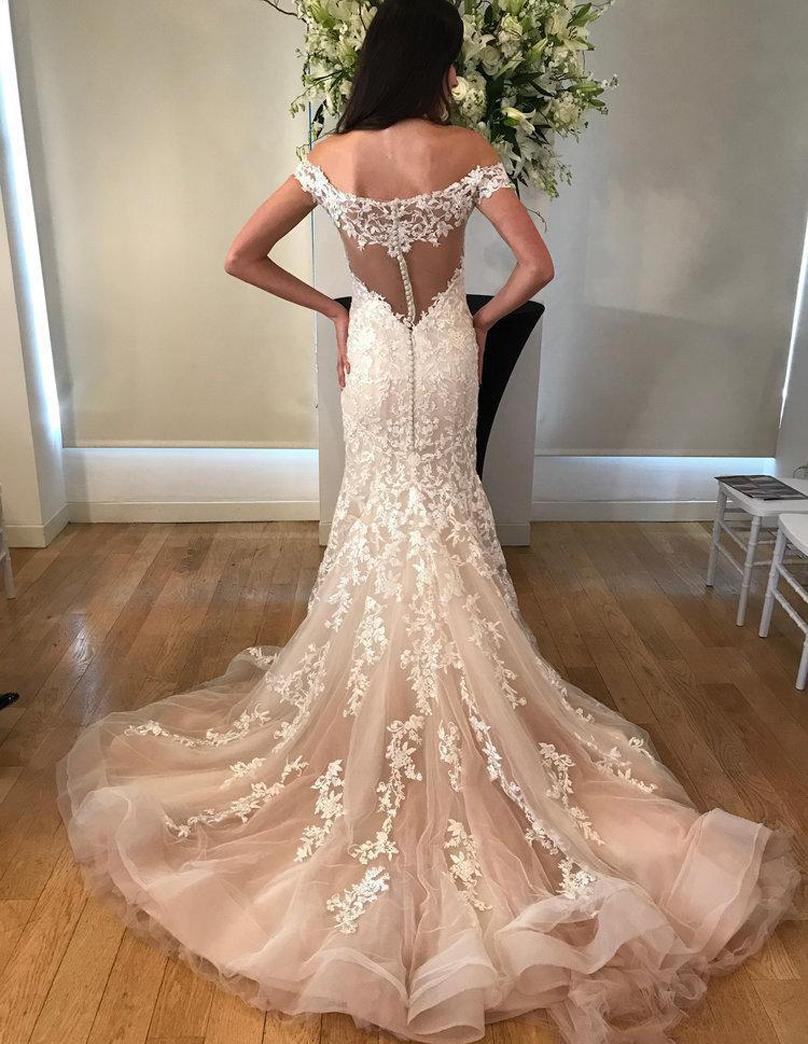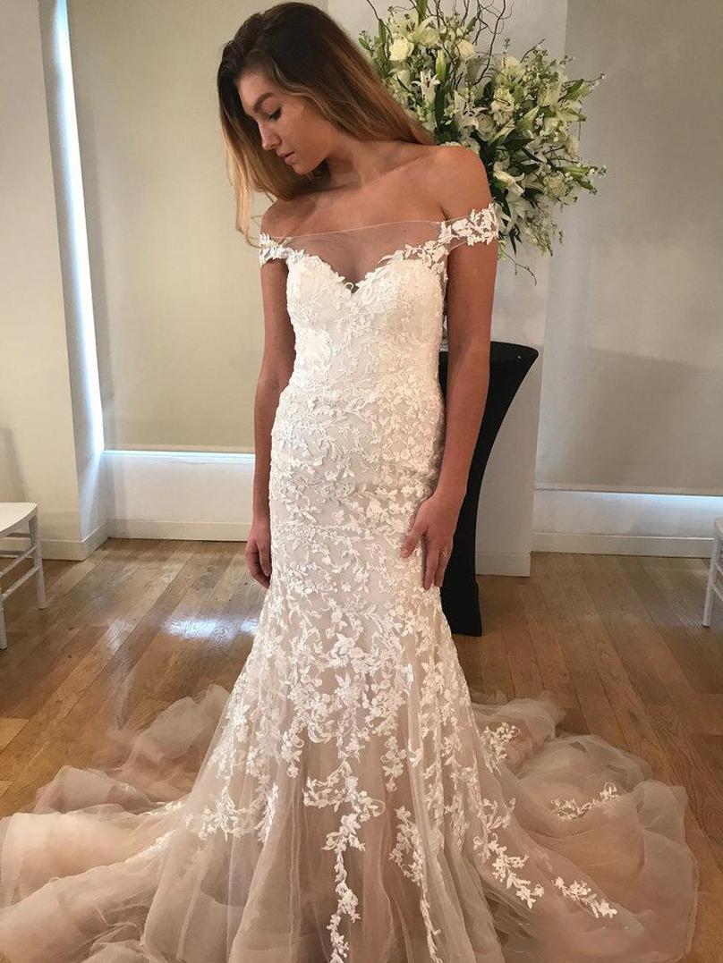 Off the Shoulder Lace Mermaid Wedding Dresses with Appliques Sweep Train Tulle Plus Size Bridal Gowns