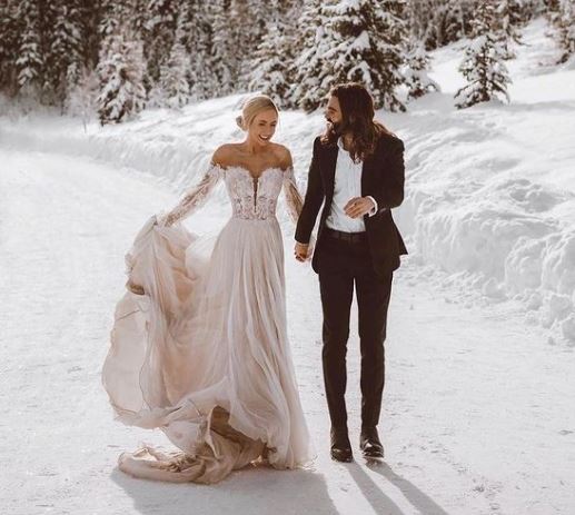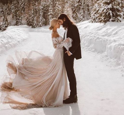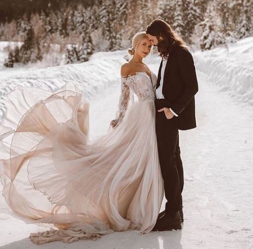Bohemian wedding dress, simple off-shoulder long-sleeved lace chiffon wedding dress