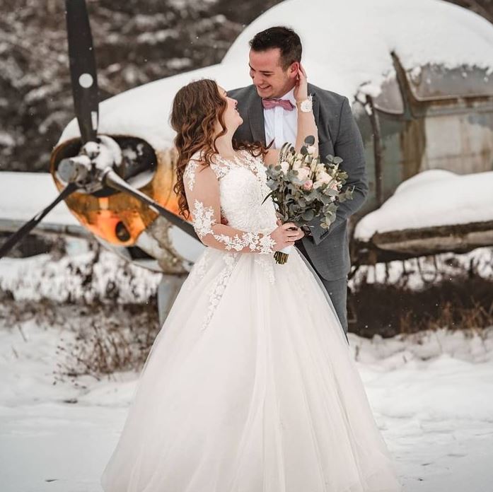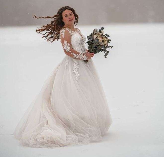 Bohemian wedding dress, long sleeve lace applique chiffon wedding dress