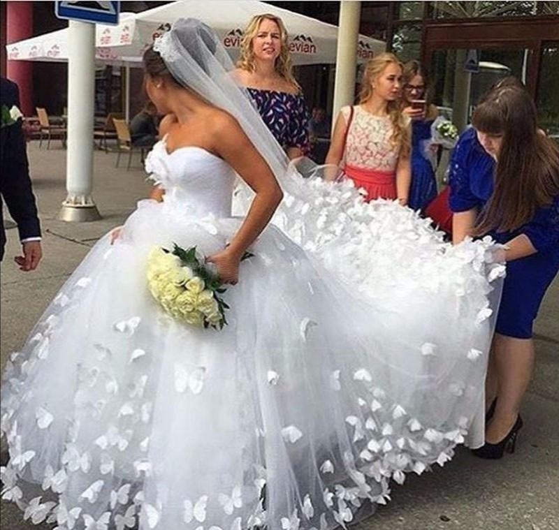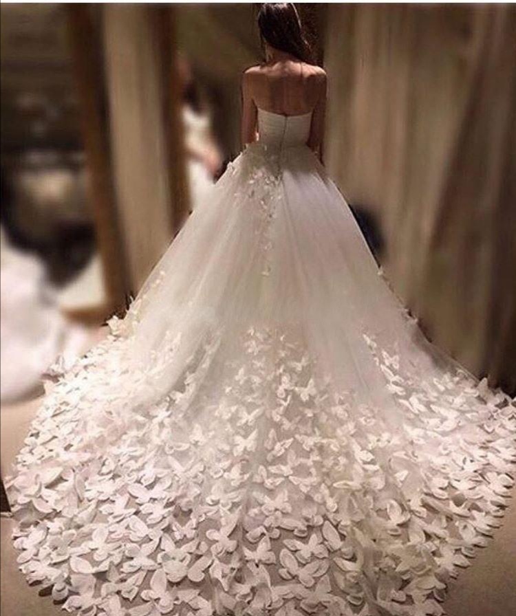 Ball Gowns Wedding Dress Handmade Butterfly Sweetheart Cathedral Train Dainty Bridal Wedding Gowns Dresses