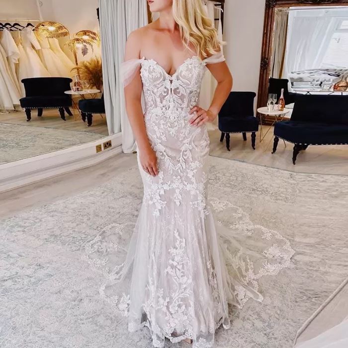 Fashion Off Shoulder Mermaid Wedding Dresses Appliques Lace Tulle Wedding Bridal Gowns