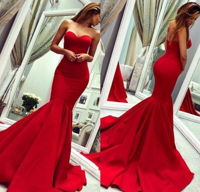 Cheap Simple Red Sweetheart Mermaid Prom Dress Evening Gowns Formal Wear Long Sweep Train Backless Plus Size Formal Dress