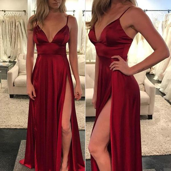 Sexy Burgundy Long Prom Dress With Slit School Dance Dress