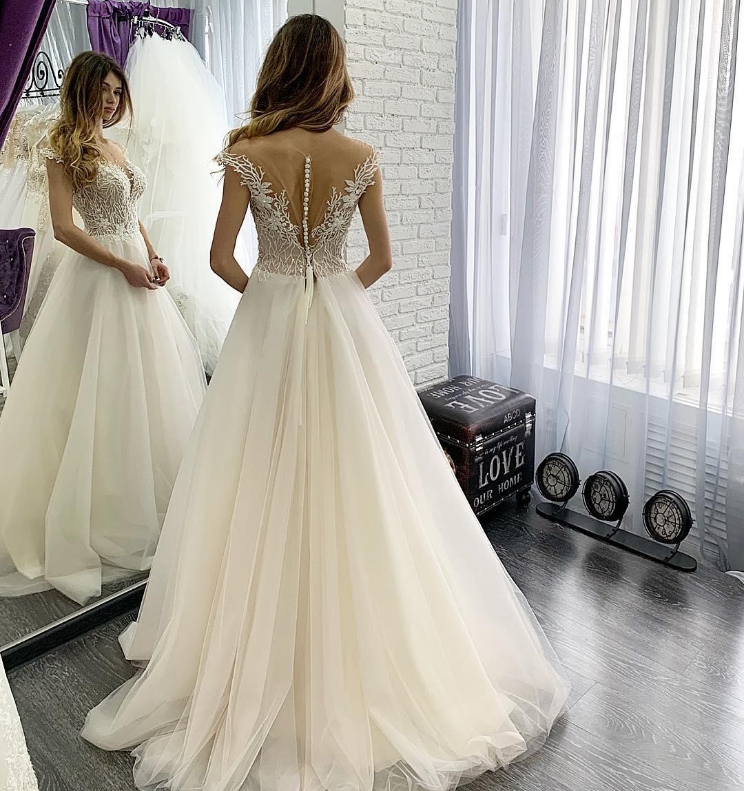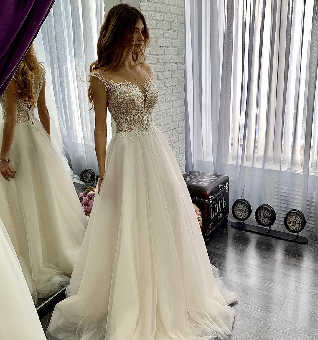 Bohemian Wedding Dresses Sheer Jewel Neck Lace Appliqued A Line Plus Size Boho Wedding Dress Sweep Train Cheap Bridal Gowns