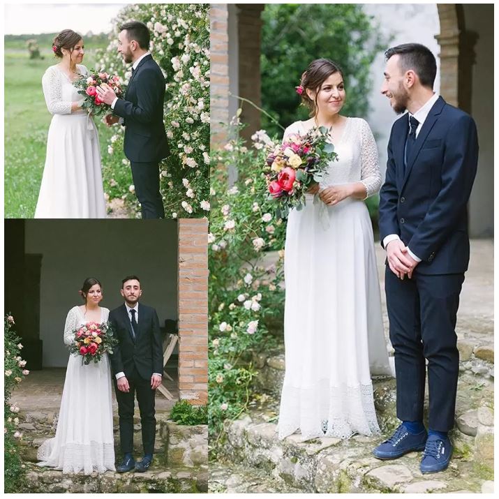 Bohemian Wedding Dresses V Neck Long Sleeves Lace Appliques Bridal Gowns Custom Made Sweep Train Plus Size A-Line Wedding Dress