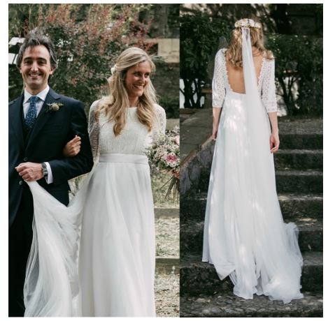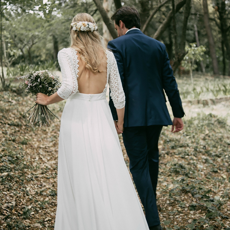 Bohemian 3/4 Sleeves Chiffon Wedding Dress For Brides Lace Backless Boho Elegant Bridal Gowns
