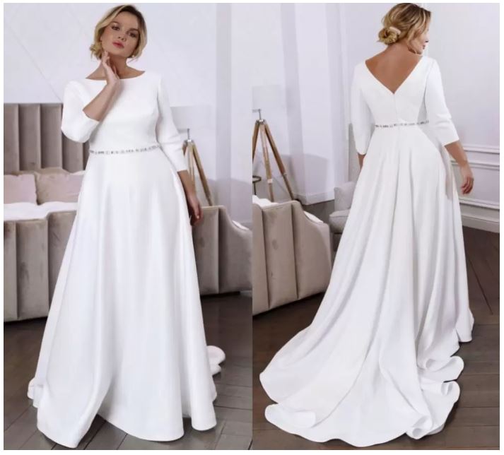 Bohemian Wedding Dress Simple Bridal Gown with Pockets A Line Beading Belt