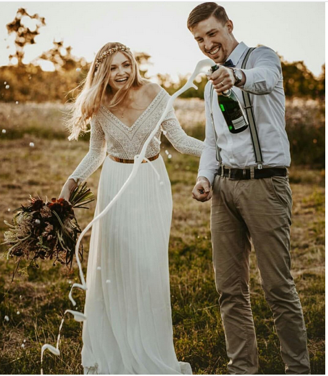 Bohemain Wedding Dresses V Neck Lace Long Sleeve Bridal Gowns Lace Floor Length Beach Boho Wedding Dress