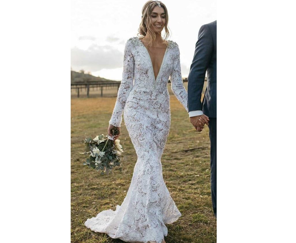 Boho Mermaid Lace edding Dresses V Neck Bridal Gowns