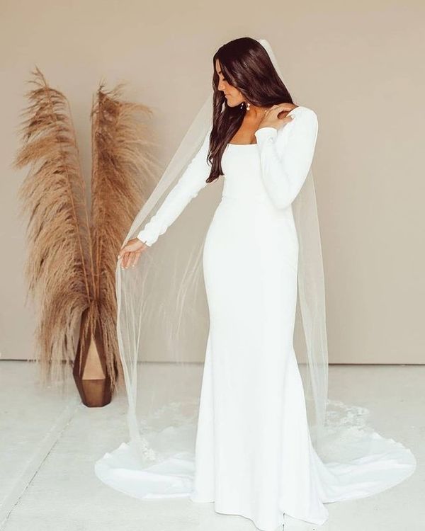 Elegant Mermaid Square Neck White Soft Satin Wedding Dress