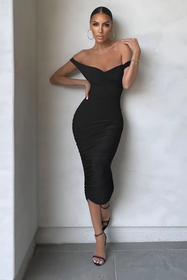 Sexy Bodycon Off the Shoulder Tea Length Black Prom Dress