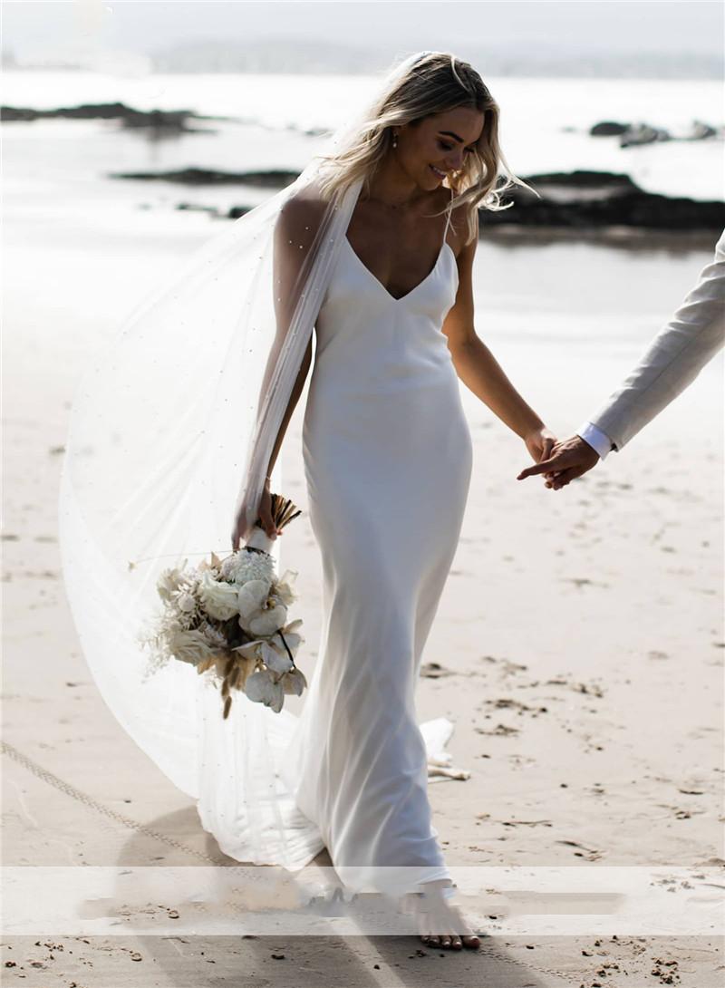 Summer Women Wedding Dress Satin Silky Spaghetti Strap Split Long Dress Elegant Sleeveless Backless Party Dress