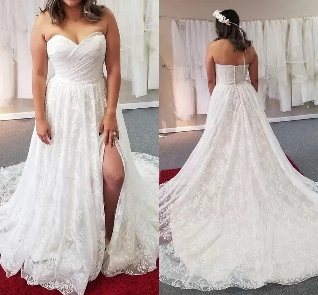 Sweetheart Beach Wedding Dresses Full Lace novia Bohemia Plus Size Sexy High Slit Greek Bridal Gown