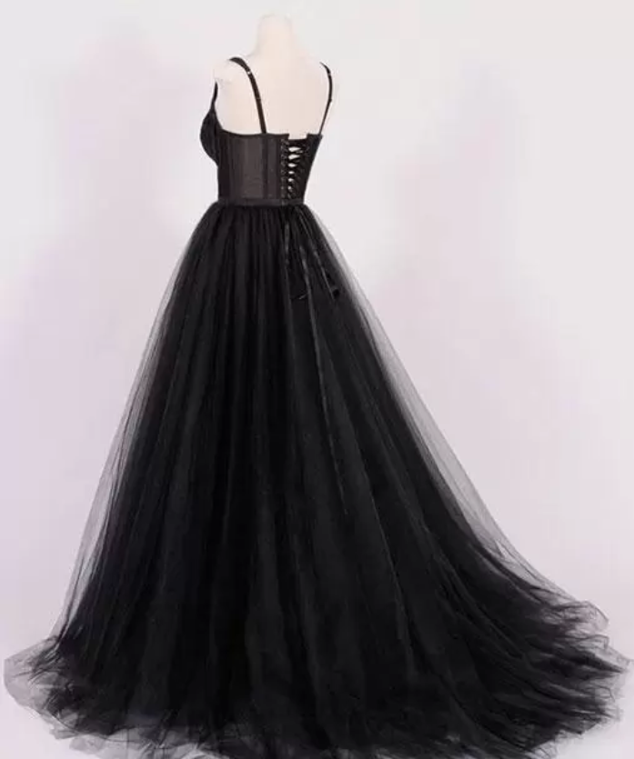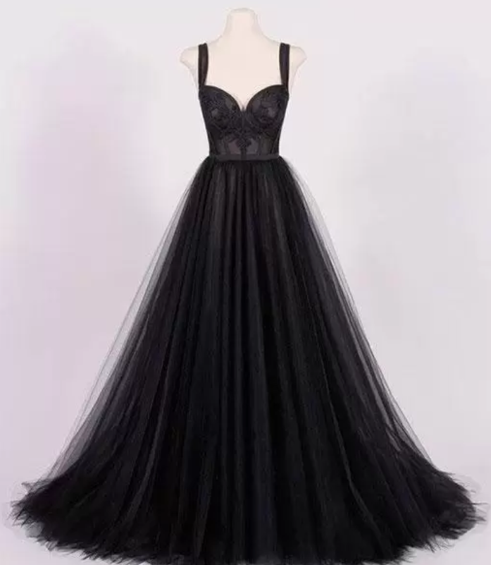 Black A-line Vintage Gothic Wedding Dress With Straps Simple Elegant Informal Bridal Gowns