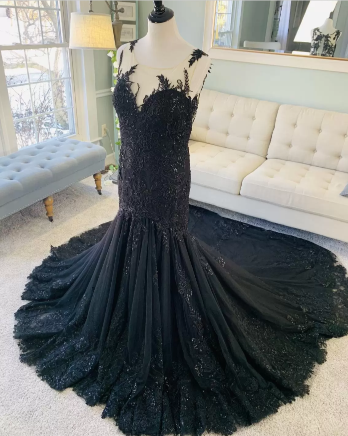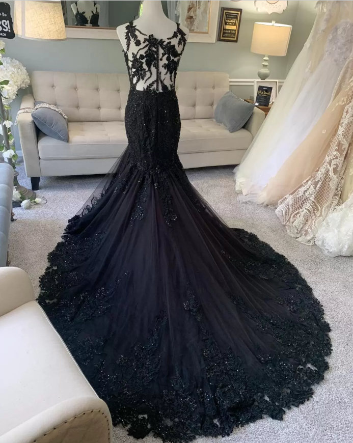 Black Gothic Mermaid Wedding Dress With Sleeveless Sequined Lace Non White Colorful Bride Dresses