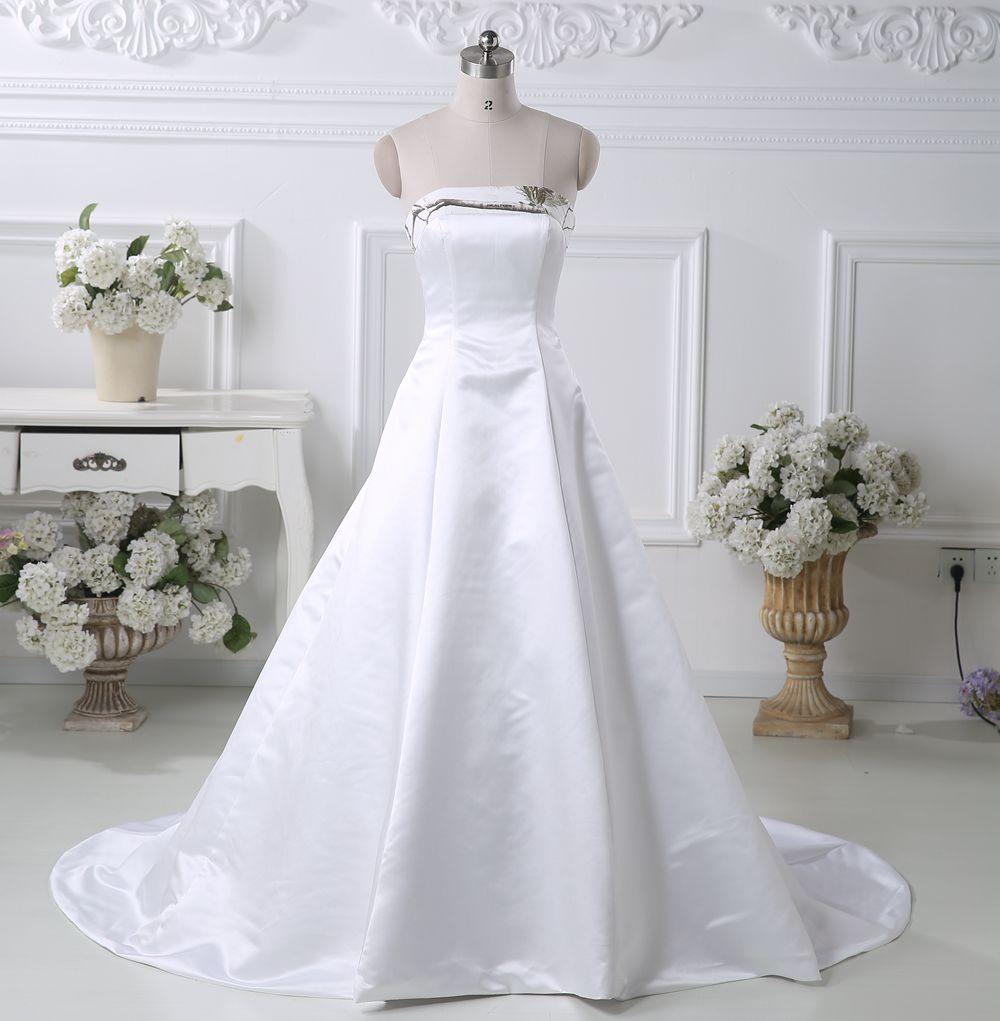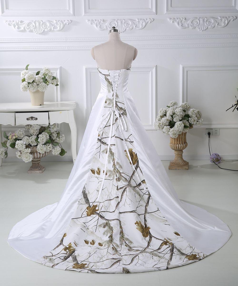 Classic A line White Camo wedding dresses Strapless Satin Court Train Corset Back Country Wedding Dress Bridal Gowns
