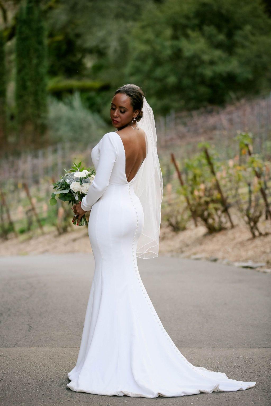 Sexy Deep V Neck Mermaid Wedding Dresses Long Sleeves Backless Floor Length Bridal Gowns