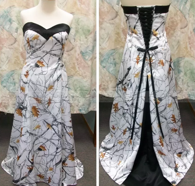 Sweetheart A-Line Snowfall Camo Wedding Dresses White Camouflage Country Bridal Gowns