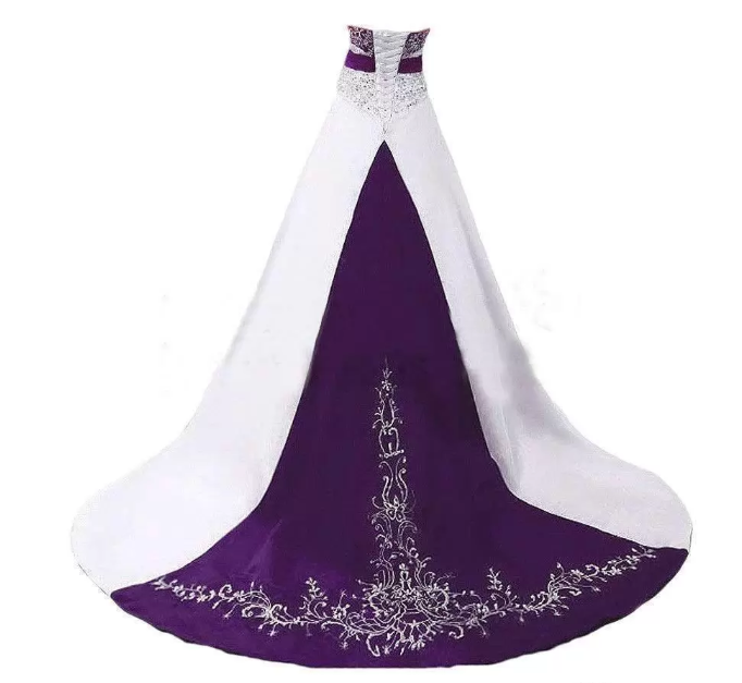 Vintage White and Purple Satin Camo Wedding Dresses Strapless Lace-up Beaded Lace Embroidery Sweep Train Corset Plus Size Wedding Gowns