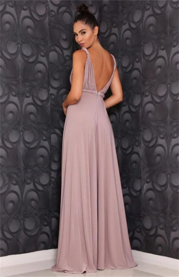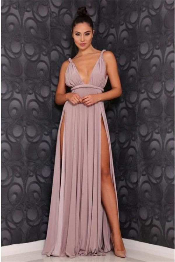Sexy A-line Deep V Neck Side Split Prom Dresses Backless Chiffon Floor Length Bridesmaid Dress