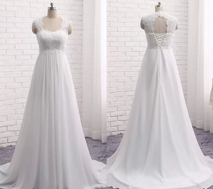 New Romantic Beach A-line Wedding Dresses Cheap Maternity Cap Sleeve Keyhole Lace Up Backless Chiffon Summer Pregnant Bridal Gowns